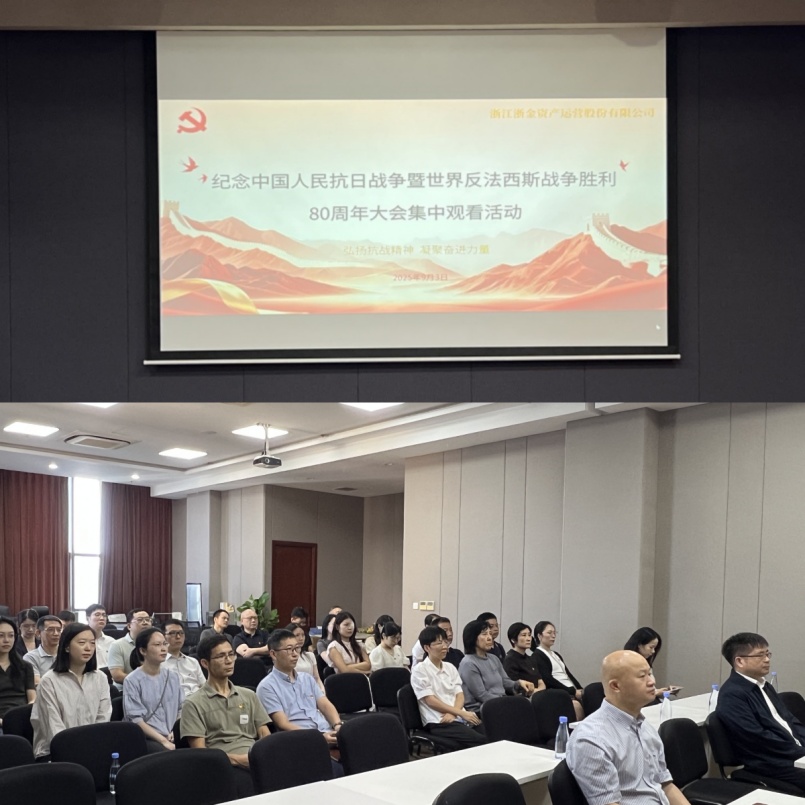 9月3日上午,纪念中国人民抗日战争暨世界反法西斯战争胜利80周年大会在北京天安门广场隆重举行。浙金资产组织全体党员集中收看大会直播盛况,共同见证振奋人心的历史时刻。